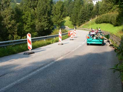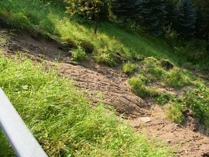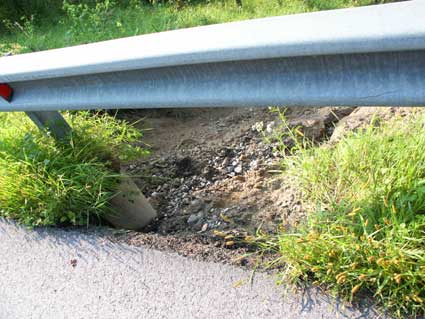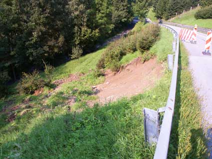 Der Hang der Straße zur Rodl hin ist abgerutscht.