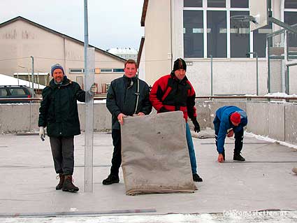 Vlies als Schutz für die Folie ausgebreitet, die Lexantafeln
